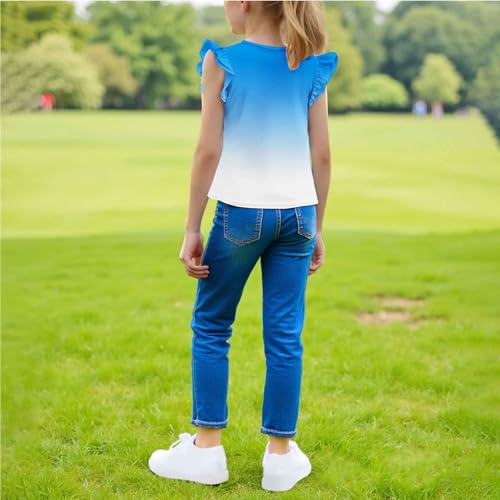 HOT ! Girls Ruffle Flutter Sleeve T-Shirts Cute Gradient Summer Tops Loose Crewneck Casual Tees for Kids 3-15 Years