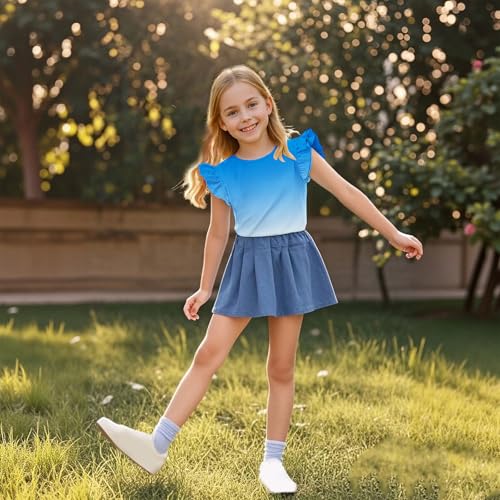 Girls Ruffle Flutter Sleeve T-Shirts Cute Gradient Summer Tops Loose Crewneck Casual Tees for Kids 3-15 Years 3