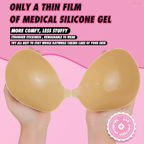 Hipass Adhesive Sticky Bra, Push Up Invisible Bras for Backless Strapless Dress,Reusable Wireless Breast Lift Bras for Women Beige 4