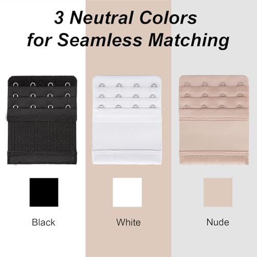 • 4-Hook Adjustable Bra extender for Versatile Fit: 3 rows of hooks; Compatible with weight fluctuations or maternity needs; 0.75-inch spacing ensures secure attachment to bras