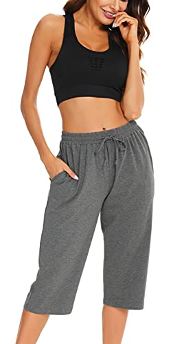HOT ! Vlazom Cotton Women's Pajama Bottoms Capri Lounge Pants Casual Cropped Pjs Trouser with Pockets & Drawstring