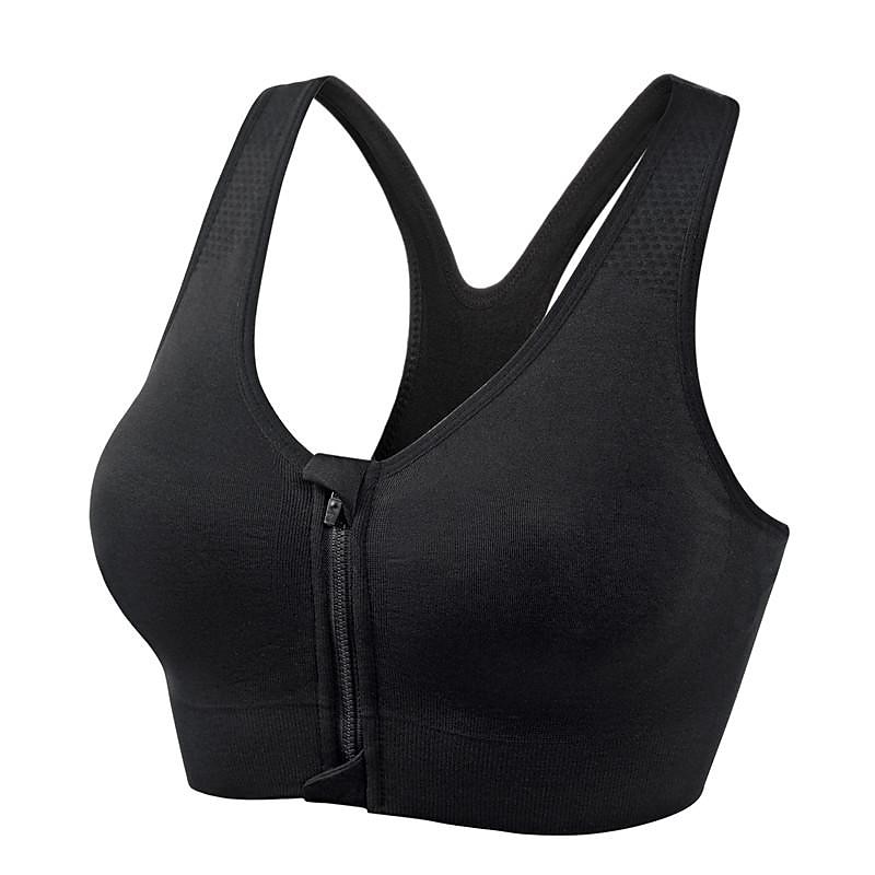 : Designed for a snug, seamless silhouette, this sports bra emphasizes a racerback style that ensures a wide range of motion and additional support. The zip-front feature allows for easy wear and removal, providing a secure and customizable fit that stays in place during high-intensity activities.