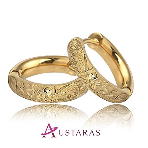 HOT ! Hoop Earrings Hawaiian Style by Austaras - Set of Two Earrings 14K Gold Plated 13mm Hypoallergenic 316L Stainless Steel Jewelry Plumeria Flower
