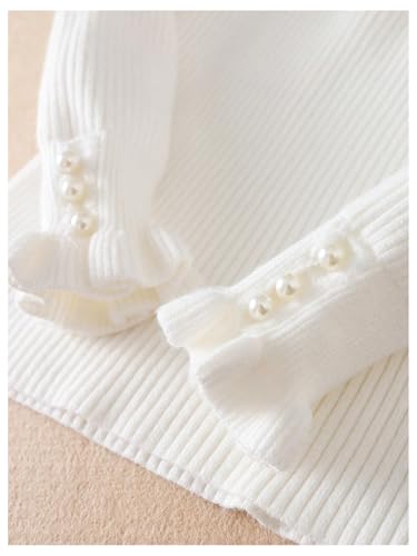 SweatyRocks Girl's Ruffle Turtleneck Sweater Pearls Long Sleeve Ribbed Knit Pullovers Tops 4