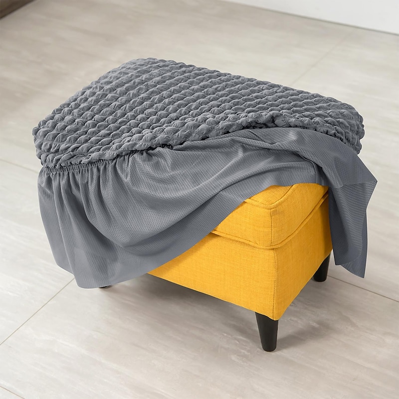 More information about Spandex Seersucker Ottoman Slipcover,Burgundy Stretch Rectangle Footstool Cover, Washable Removable Covers for Storage Ottoman, High Spandex Protector for Foot Rest Stool