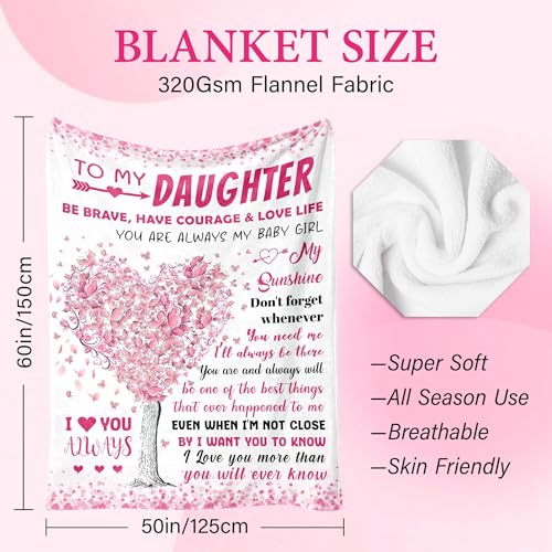 • Daughter Blanket: Measuring 50"x60", this high-quality blanket offers cozy comfort and warmth. It’s more than just a gift—it’s a heartfelt expression of love, ensuring she feels cherished every day
