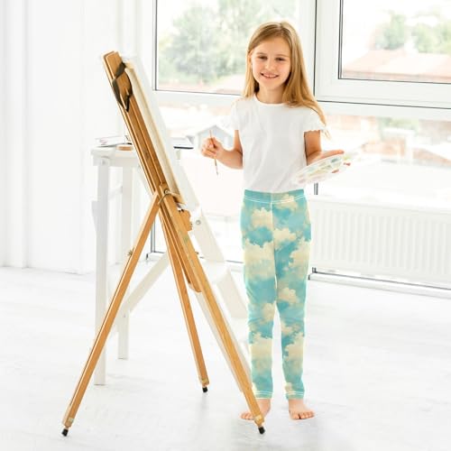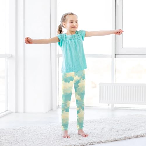 KLL Clouds on Blue Background Girls Active Leggings Casual High Waisted Dance Pants Gym 6
