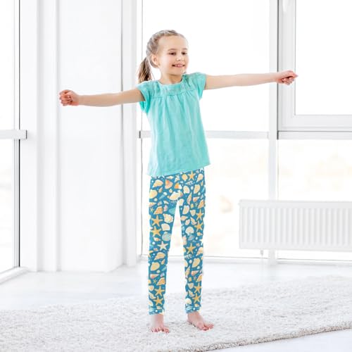 Seashells Different Shapes and Starfish Kids Girl's Leggings Stretch High Waisted Dance Pants Gym 6