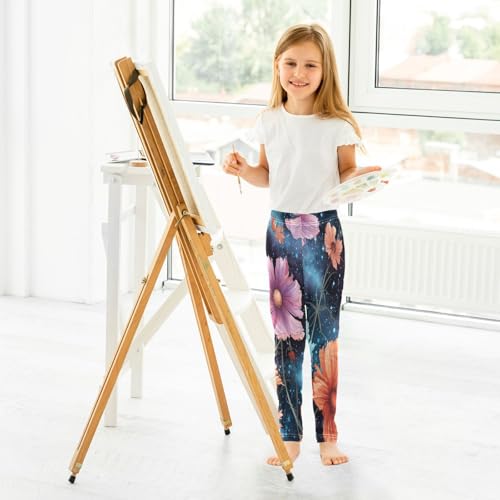 Bolaz Toddler Girls Leggings Printed Yoga Pants Leggings Orange Pink Flower for Kids 7
