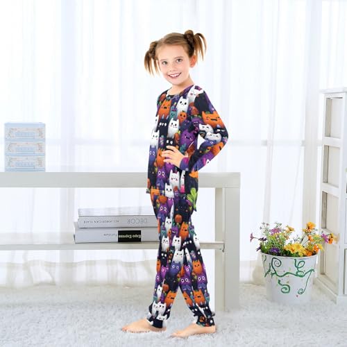 Cute Cats and Pumpkins Soft Pajama Set for All Seasons,Breathable Pjs Long Sleeve Sleepwear,Comfy Loungewear 2 Piece Underwear Set 4T 7