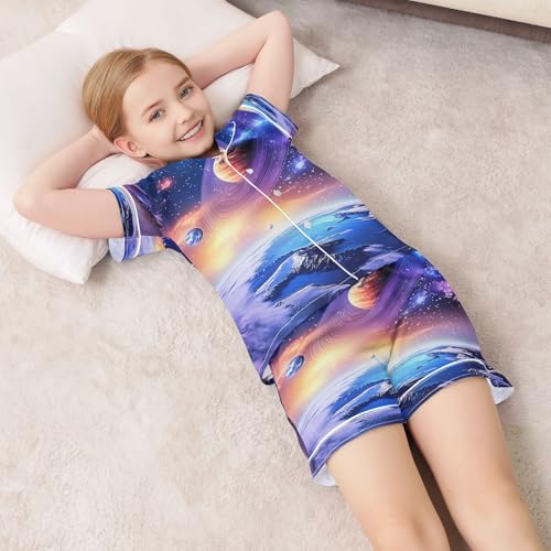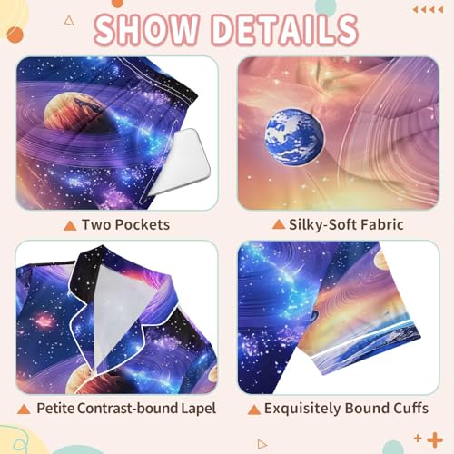 ALAZA Starry Sky Earth Planet Satin Pajamas Set Short Sleeve Button Down Sleepwear Summer Pjs 2 Piece 6