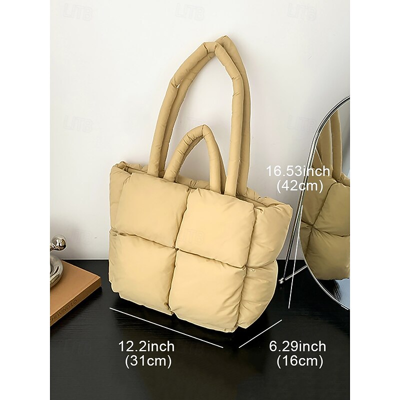 $26.99 - Women's Oversized Puffer Tote Bag - Beige Quilted Shoulder Bag, Lightweight and Spacious, Perfect for Travel and Everyday Use 2025. Shop for cheap Handbag & Totes online? Buy at lightinthebox.com on sale today!