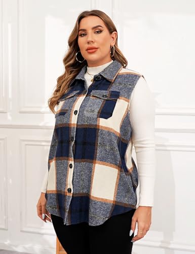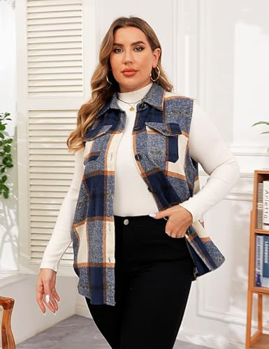ZOMVA Plus Size 1X-5X Women's Flannel Plaid Long Vest Button Down Sleeveless Jacket Shacket Coat Casual Fall Fashion Outfits 4