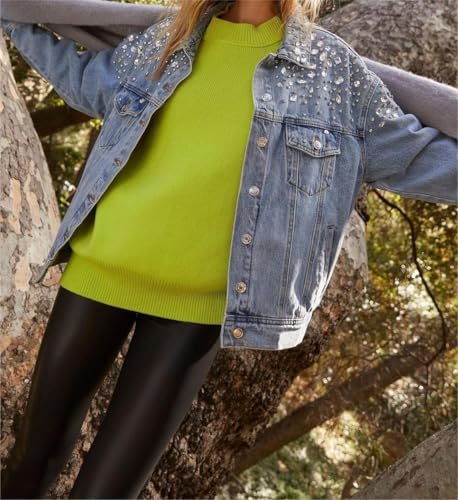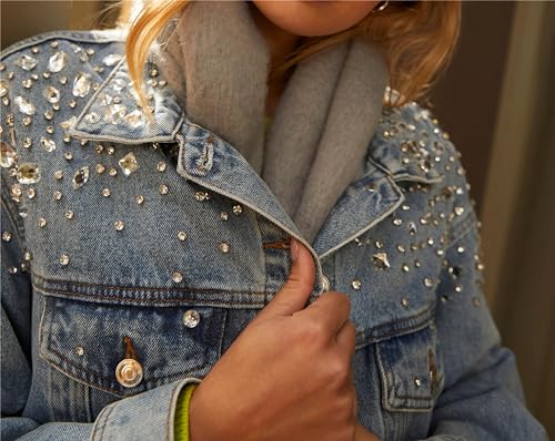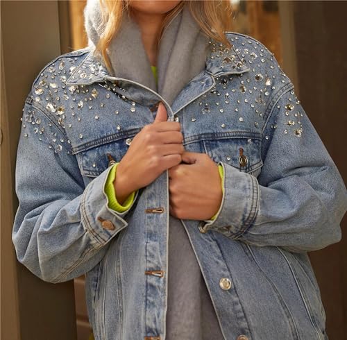 More information about LifeShe Women's Rhinestone Denim Jacket Casual Long Sleeve Jeans Trucker Jacket Coat