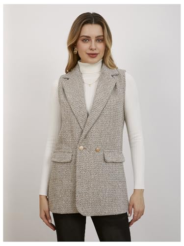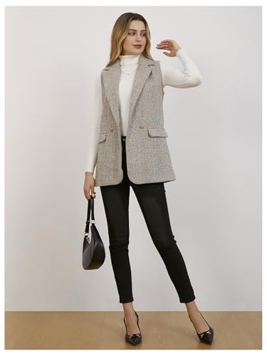 HOT ! MakeMeChic Women's Tweed Blazer Vest Sleeveless Lapel Collar Business Casual Jacket Coat