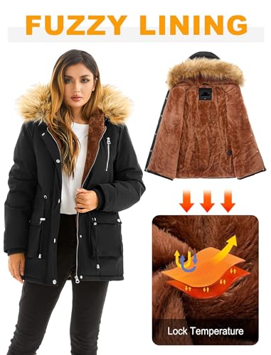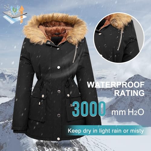 Garemcy Womens Winter Water Repellent Coat Thicken Puffer Jacket Warm Fleece Lined Parka With Fur Hood Coat 6