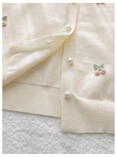 MakeMeChic Girl's Cherry Pearl Cardigan Sweater Button Down Long Sleeve Knit Cute Outerwear 6