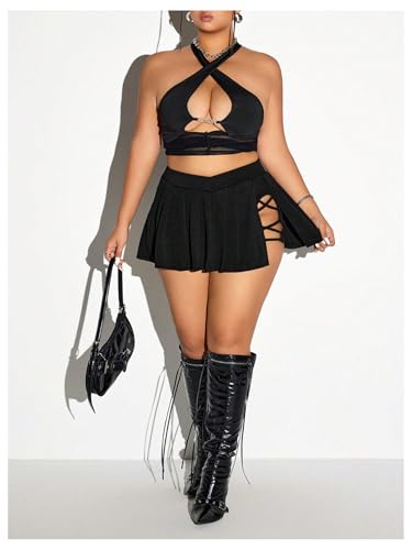 • Design: The plus size mini skirt showcases crossover waist, side slit, high cut, strappy, pleated, and invisible pocket