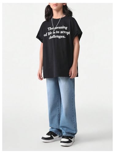 Verdusa Boy's Loose Straight Leg Jeans Casual Denim Pants Long Trousers Blue 10Y 2