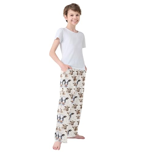 Cute Cow Long Pajama Pants Elastic Waist PJ Bottoms with Pockets S A113310 4