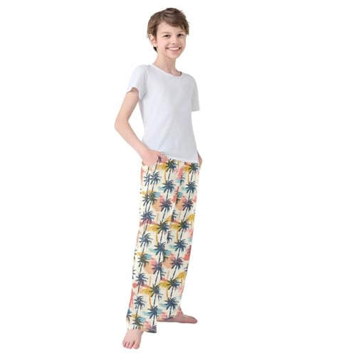 ALAZA Coconut Tree Pajamas Bottoms with Pockets Comfy Pjs Sleepwear Elastic Waistband Pajamas Pants Lounge Pants for 6-14 Years 1