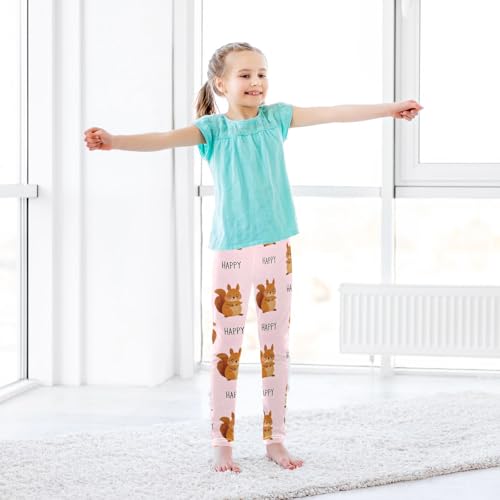 ALAZA Girls' Leggings Children's Yoga Pants Skinny Printed Dance Cute Squirrel Happy Comfortable 4T 6