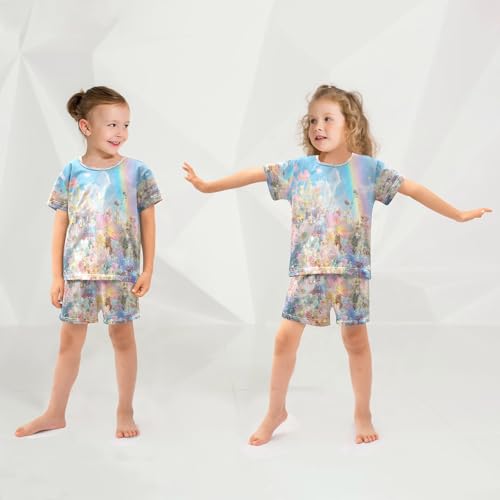 senya Short Sleeve Pajamas Sets Summer Cotton Sleepwear Rainbow and Flower 2