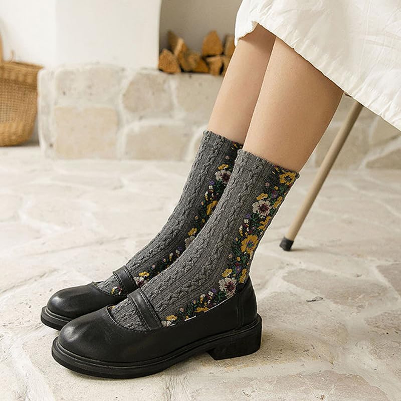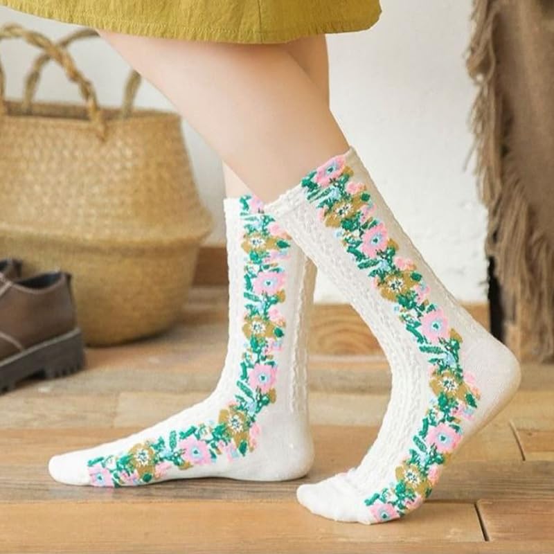• Easy to Match: One size fits best, suitable for US shoe size 5-9, stylish and comfortable, year-round wearability, from spring dresses to winter boots, vintage embroidered floral socks complete any outfit with seasonal versatility