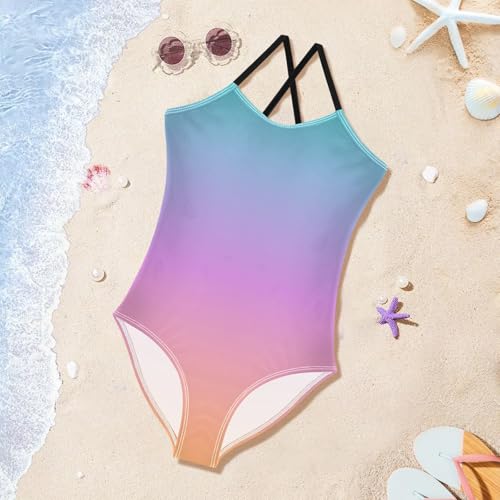 Yellow Blue Gradient Bathing Suits for Girls Kids Swimsuits Swimwear Summer Beach One Piece Swimsuits 6