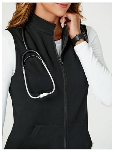 HOT ! SOLY HUX Women's Zip Up Vest Sleeveless Collared Outerwear Scrubs Workwear with Pocket