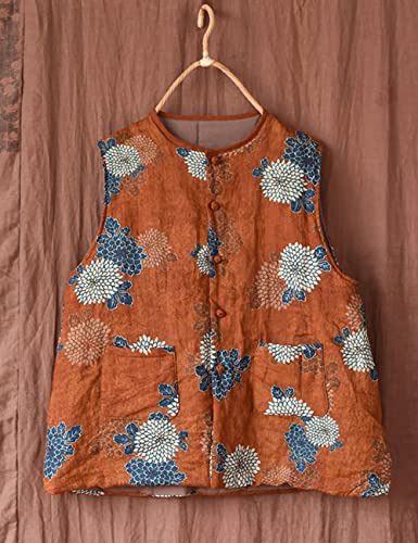 NFYM Womens Thin Quilted Lightweight Vest Cotton Linen Printed Spring Vintage Padded Outwear 6