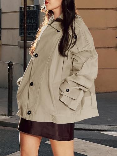 Tankaneo Womens Trench Coat Single Breasted Lapel Casual Oversized Coats Short Jacket Fall Outerwear 5
