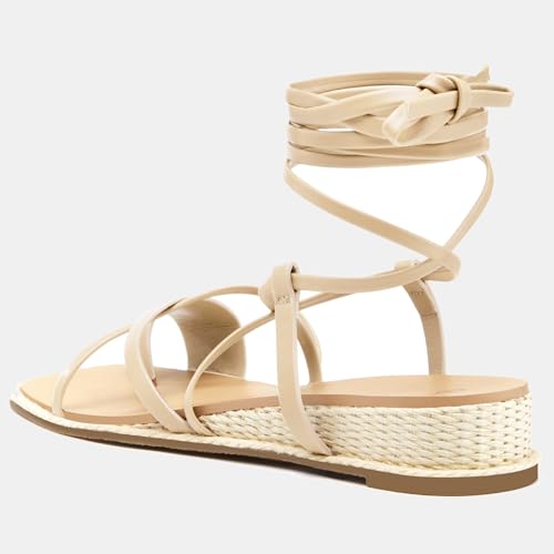 Coutgo Womens Lace Up Gladiator Sandals Strappy Flat Dressy Low Heel Wedges Thong Summer Beach Shoes 5