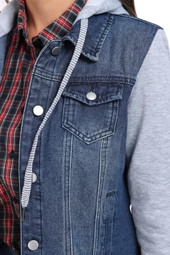 J.Corrine Women's Classic Casual Hooded Denim Jacket Drawstring Vintage Washed Jean Jacket Sweatshirt with Pockets 6