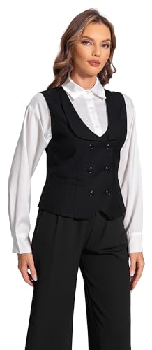 Foucome Double Breasted Waistcoat for Women - Dressy Lapel Collar Vest Top 5