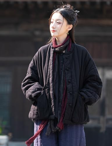 Ystylee Women's Linen Quilted Jackets Long Sleeve Warm Winter Handmade Knot Button Up Coat with Pockets 7