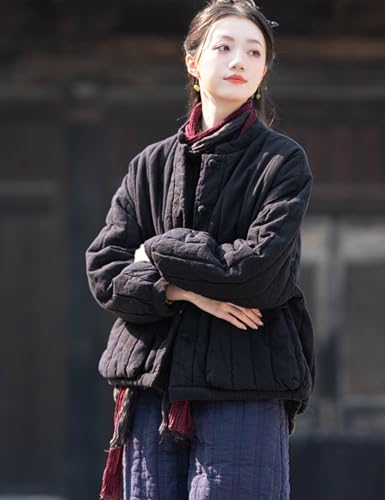 HOT ! Ystylee Women's Linen Quilted Jackets Long Sleeve Warm Winter Handmade Knot Button Up Coat with Pockets