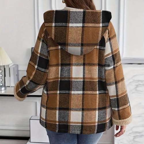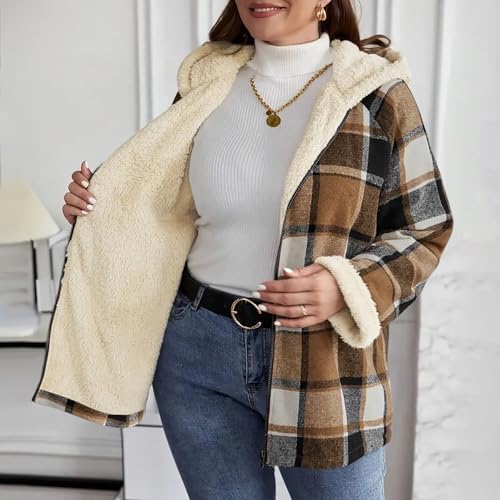 Womens Plaid Shacket Jacket Sherpa Lined Flannel Jackets Oversized Winter Warm Zip Up Fleece Hoodies Coat Outwear 7