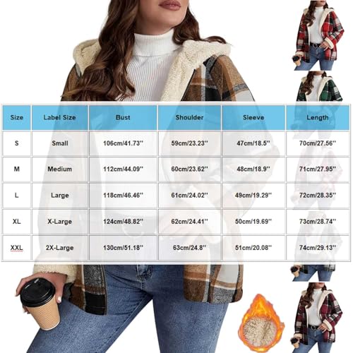 HOT ! Womens Plaid Shacket Jacket Sherpa Lined Flannel Jackets Oversized Winter Warm Zip Up Fleece Hoodies Coat Outwear