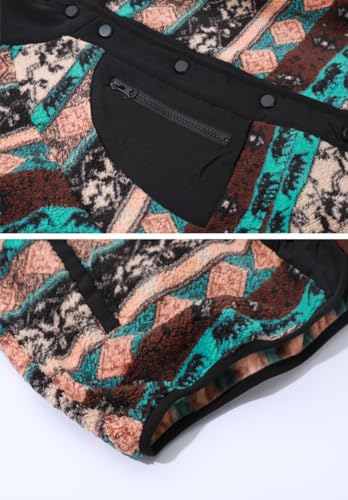 Women's Fall Warm Fleece Aztec Tribal Print Fuzzy Button Down Jacket Lightweight Fluffy Coat 5