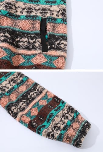 Women's Fall Warm Fleece Aztec Tribal Print Fuzzy Button Down Jacket Lightweight Fluffy Coat 6