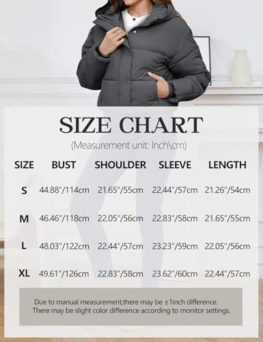 • Design: Winter hooded puffer jackets, cropped length, hood with elastic drawstrings to adjust closing size, full zipper and snap button closure, two hand pockets with zipper closure, ribbed cuffs, adjustable drawstrings on the hem, he shorter length provides ease of movement while still keeping you warm and stylish.