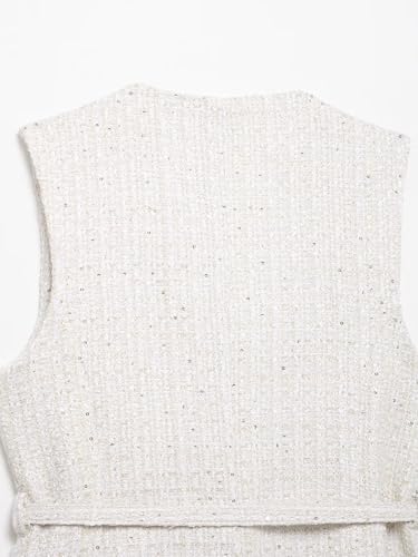Tweed Vest Women Sleeveless Button Front Casual Blazer Jackets Work Office Vest 4