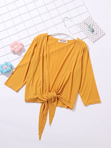 Hansber Kids Girls Open Front Cardigan Self Tie Knot Long Sleeve Short Coat Lightweight Outwear Spring Fall Clothes 7