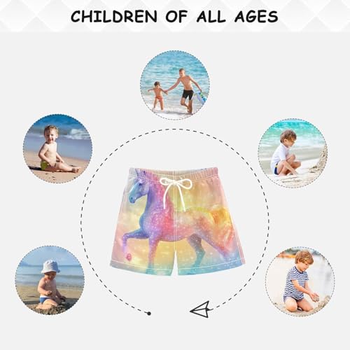 Pigsaly Boys' Swim Board Shorts Rainbow Unicorn Glitter Boy's Swim Trunks Kids Swimwear 2T 5