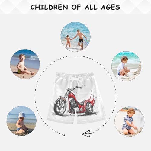 Boys Beach Board Shorts Fire Motorcycle White Swim Trunk Teen Swimwear 8-16Y 5