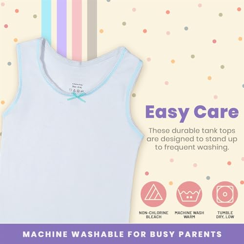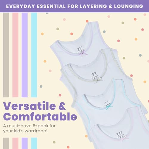 • EVERYDAY ESSENTIALS - Whether it's for layering, lounging, or daily wear, our pack of 6 girls undershirts is an essential addition to your child's wardrobe. Experience the comfort and quality of these girls' white tank top and multi-color camisole sets that will keep them feeling their best all day long.
