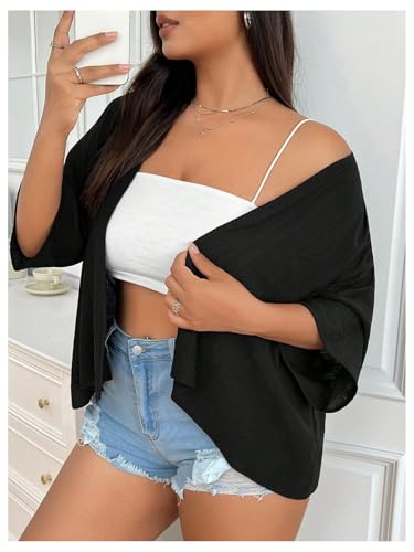 WDIRARA Women's Plus Size Open Front Jacket 3/4 Sleeve Lightweight Cardigan Outerwear 3