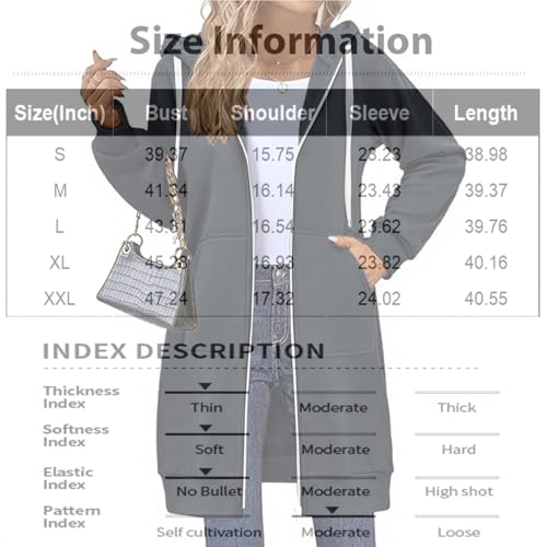 • 【Material】: The long hoodies for women zip up with soft, and comfortable fabric make you feel cozy all day long. Classic hoodies are styled with drawcord closure for a custom fit.