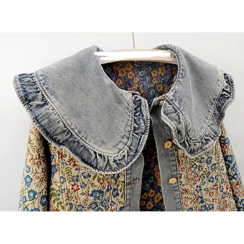 More information about Women's Long-Sleeved Sweet Peter Pan Collar Denim Jacket Floral Cropped Denim Jacket Jacquard Versatile